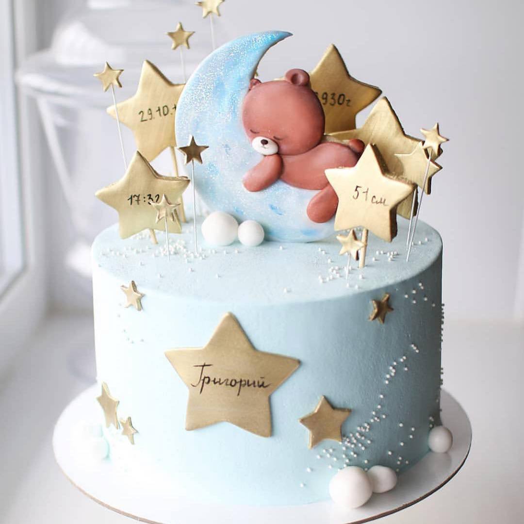 Чтобы создать праздничное настроение и удивить гостей, выберите торт с фигуркой медвеженка.
